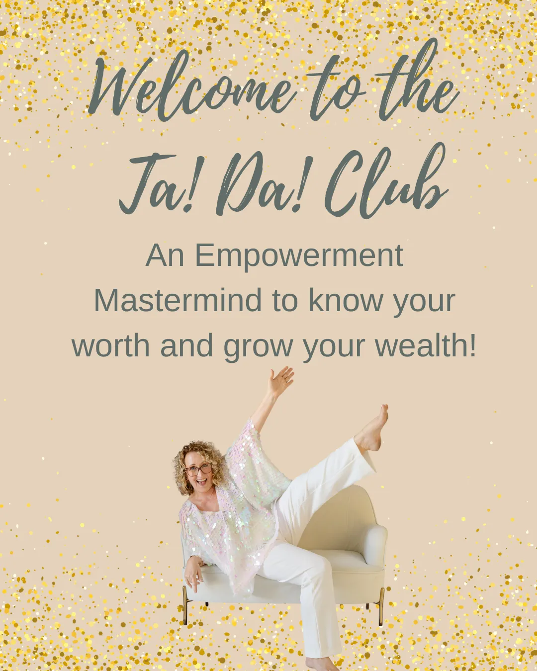 Inside the Ta! Da! Club you’ll get monthly teachings, mindset makeovers, and tools that help you elevate your confidence, expand your possibilities, and build momentum toward the life you’ve been craving.